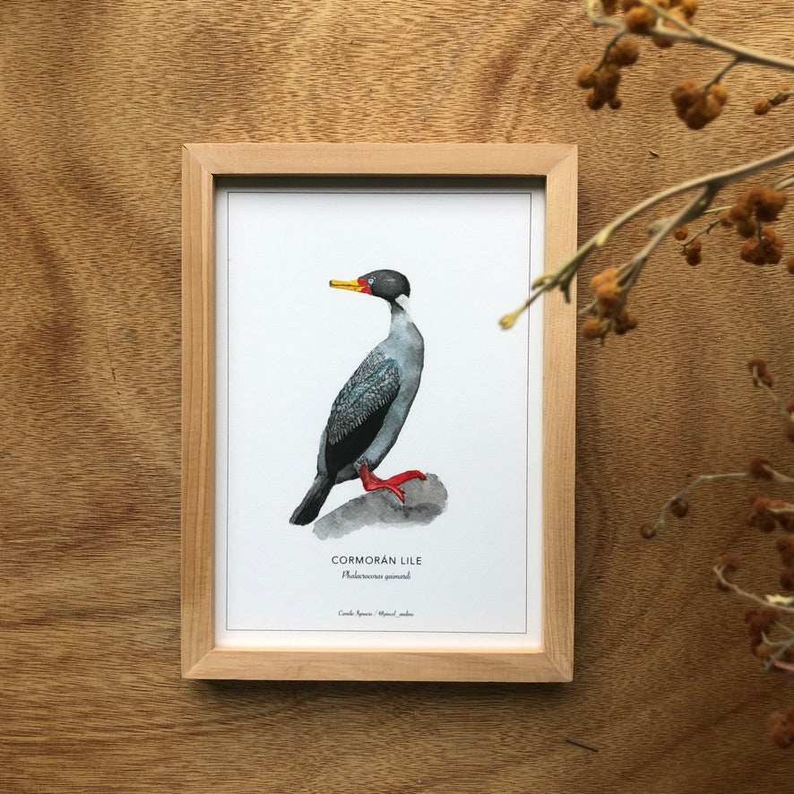 Reproducción impresa en Puerto Varas en Giclée, técnica de impresión para obras de arte, con tintas pigmentadas de primera calidad y papel texturizado 100% algodón libre de ácidos. Incluye nombre común y científico, obra con sello original Pincel Andino.